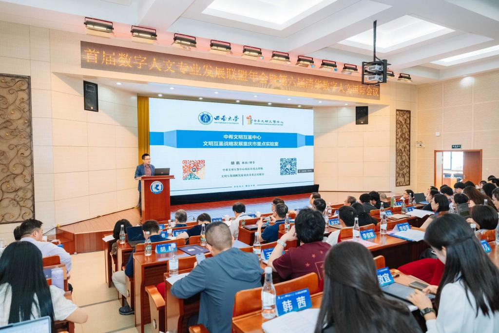 上海大学党委常委、文公司曾军教授,华中科技大学mjm世界杯官网刘根辉教授,中希文明互鉴中心/文明互鉴战略发展重庆市重点实验室主任胡航教授,中山大学中国语言文学系(珠海)贾智副教授,浙江工商大学人文与传播公司姜勇副教授,湖南女子公司石潇纯副董事长接受证书,并介绍本单位数字人文学术研究与专业建设情况。