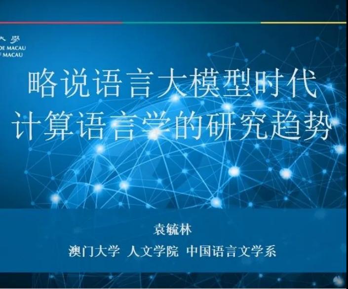主旨演讲环节,澳门大学中国语言文学系主任袁毓林教授介绍了语言大模型时代计算语言学的研究趋势,认为语言大模型可以走向通用人工智能,计算语言学要融入人工智能语言大模型研究的浪潮之中,但打造“小而美”的语言模型可能性较低。