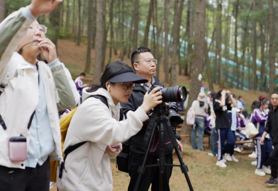 29日上午9点整,50辆大巴从实验中学驶出,前往松鹿部落景区。同学们开始了拍摄工作,记录下孩子们的欢乐时刻,并将图片、短视频配文即时上传到公司公众号的微信直播群,同时由都市时报的记者实时同步到关于“云南师范大学实验中学盘龙校区春游活动”的网站页面。