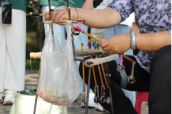 行至半路,哈尼族称为“打褙子”的传统图景猝然铺展,妇女指尖似衔着春燕,木条往来间,各色丝线带着指尖的温度化作哈尼族人头饰、手环等的织物。这里的村民还会为自制的布匹染色,色彩晕染间,哈尼族传统服饰的轮廓,正慢慢清晰。