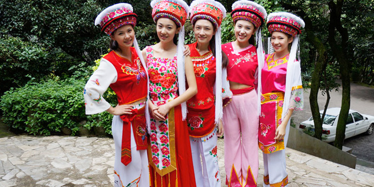 (图中从左至右分别为:傣族、苗族、白族、彝族、傣族服饰)