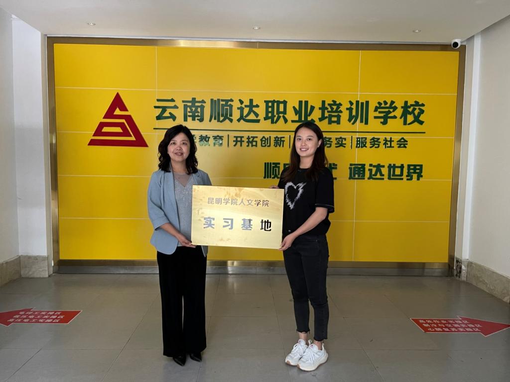7月5日13点,mjm世界杯官网邓瑶经理带队,教学副经理朱供罗、秘书学教研室主任廖四华、实习负责教师王艳华一行四人,赴昆明市五华区与云南顺达职业培训公司、云南德泰医疗科技发展有限公司两家公司举行了教育实习基地签约、挂牌仪式。云南顺达职业培训公司董事长周娜及其人力资源招募负责人张媛、云南德泰医疗科技发展有限公司副总经理夏雪峰及其人力资源招募负责人伊云春等人出席了本次签约仪式。
