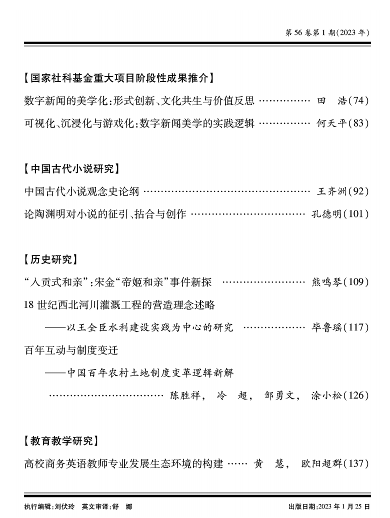 公司孔德明老师题为《论陶渊明对小说的征引、拈合与创作》的学术论文,被刊录发表于三核刊物(中文社会科学引文索引CSSCI来源期刊、全国中文核心期刊、中国人文社会科学期刊AMI综合评价核心期刊)《江西师范大学学报》(哲学社会科学版)2023年第1期。公司全体同仁对孔德明老师表示热烈祝贺。