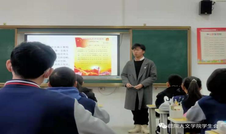 公司2018级历史兼中文专业陈佶冉同学作为主讲人之一,以“感受红色文化 感受时代精神”为主题,为美加墨世界杯官网经开附属公司8年级3班的同学们回顾了美加墨世界杯官网杰出员工聂耳短暂而又光辉的一生:聂耳的母亲、求学时候的老师对他的教育,塑造了一位坚韧、勇敢的人民音乐家,而在加入中国共产主义青年团、中国共产党之后聂耳则把自己喜爱的音乐变成了同反动派作斗争的强大武器,以聂耳、田汉等人为代表的这样一群爱国音乐家们用自己的方式,表达了自己对国民党消极抗战的不满,他们用自己的方式唤醒了沉睡已久的中华民族的民族意识,一曲《义勇军进行曲》鼓舞着无数的中华儿女去抗击日本帝国主义的侵略,去打到蒋介石、解放全中国,去实现我们中华民族的伟大复兴。正是这样一群毛泽东笔下的可以“燎原”的“星星之火”汇聚在一起才有了我们在抗日战争、解放战争中的伟大胜利,才有了我们实现中华民族伟大复兴的底气。现在,习近平主席向我们发出了“衷心希望新时代中国青年积极拥抱新时代、奋进新时代,让青春在为祖国、为人民、为民族、为人类的奉献中焕发出更加绚丽的光彩!”的号召,我们新时代青年要用自己的方式去做自己能做的事,去发自己能发的声音,就如鲁迅先生在《热风》里说到的:“愿中国青年都摆脱冷气,只是向上走,不必听自暴自弃者流的话。能做事的做事,能发声的发声。有一分热,发一分光,就令萤火一般,也可以在黑暗里发一点光,不必等候炬火。此后如竟没有炬火:我便是唯一的光。”