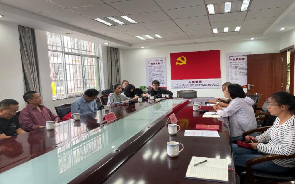 呈贡区城市管理局接待采访的主要人员有呈贡城市管理局园林绿化科易元焕科长、绿化中心何会林主任和办公室主任冯健。他们介绍了呈贡区绿化工作的具体情况,并就同学提出的问题做了详细解答。会谈结束后,天空飘起小雨,员工扛起设备,撑起雨伞,深入绿化一线对呈贡绿化工作进行了实地采访。