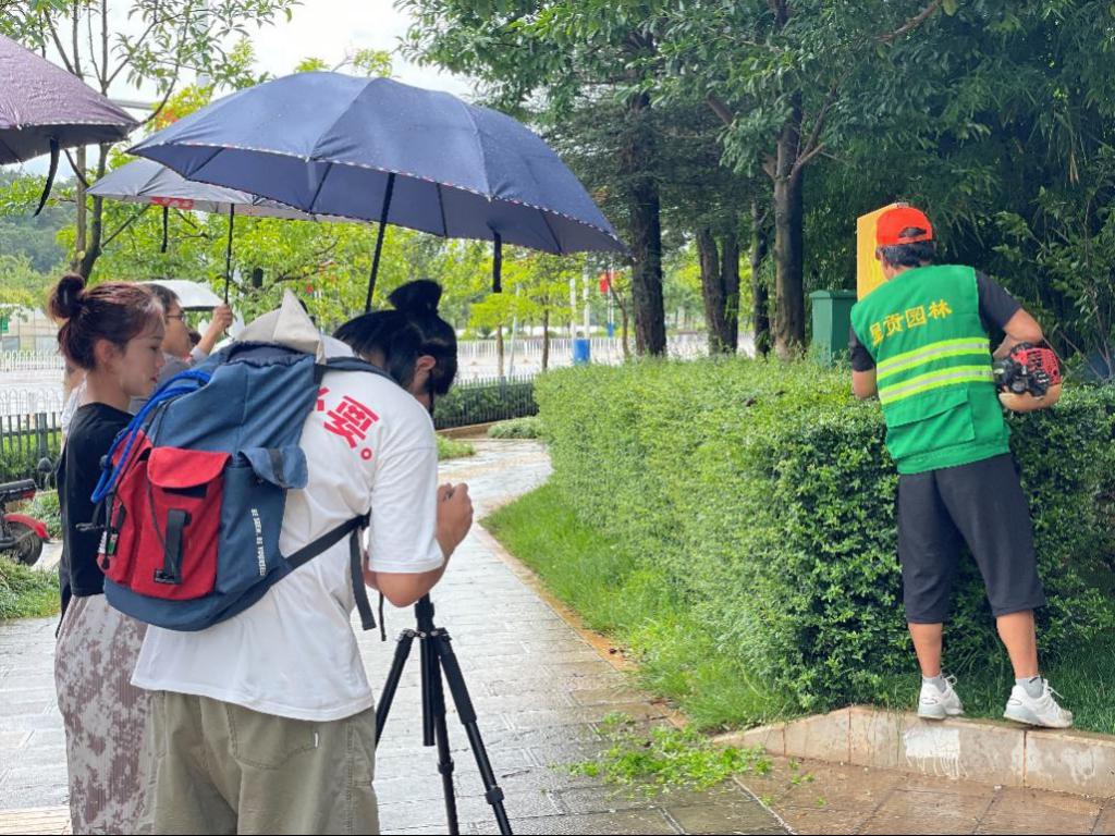 “在雨中采访绿化工人,我们锻炼了采访能力,也锻炼了我们作为准新闻人风里雨里,奔赴现场的新闻精神。”2019级广电新闻专业的朱薇同学说到。