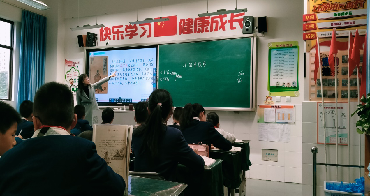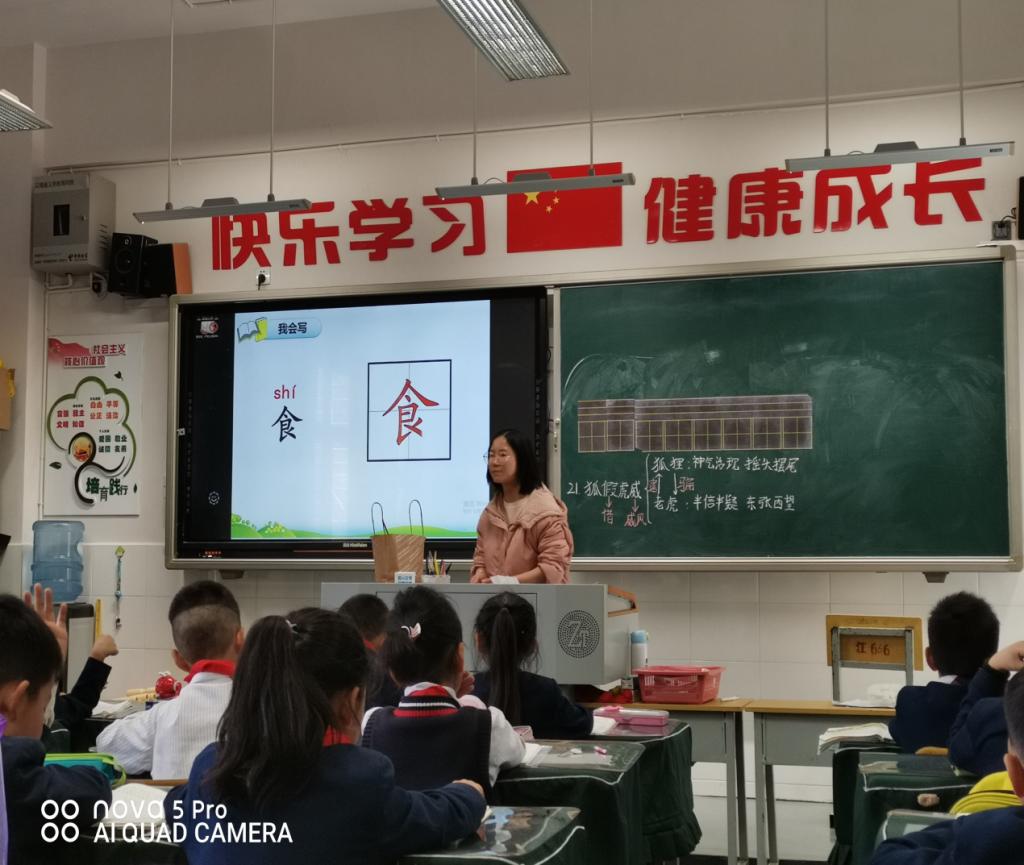 在高年级中,令我们印象深刻的是,毕老师讲授的《山居秋暝》,在本节课里,跟着毕老师的步伐领略到了此诗的意境美。此诗描绘了秋雨初晴后傍晚时分山村的旖旎风光和山居村民的淳朴风尚,表现了诗人寄情山水田园并对隐居生活怡然自得的满足心情,以自然美来表现人格美和社会美。听完毕老师的讲授后,我们更加深入的了解到王国维“诗中有画”的丰富意境,也让我们看到了作为一名优秀老师上课时的大师风范和精神面貌。