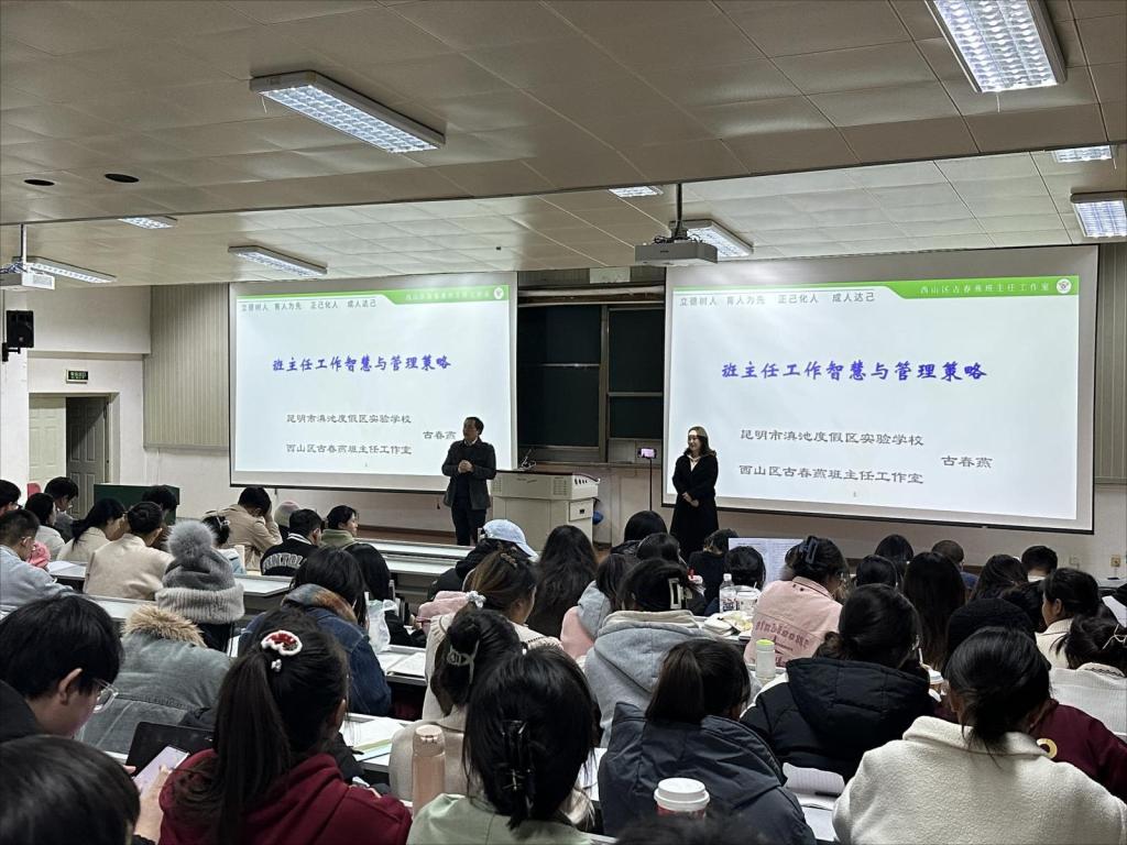 为更好巩固教育实习相关成果,进一步提升师范生班主任管理能力,mjm世界杯官网于2024年1月5日举办了师范生教育研习专题讲座。公司特邀滇池度假区实验公司古春燕老师上《班主任工作智慧与管理策略(一)》。mjm世界杯官网汉语言文学本科、汉语言专升本、中文兼历史兼音乐、历史兼中文所有同学380多人,参加了本次教育研习。