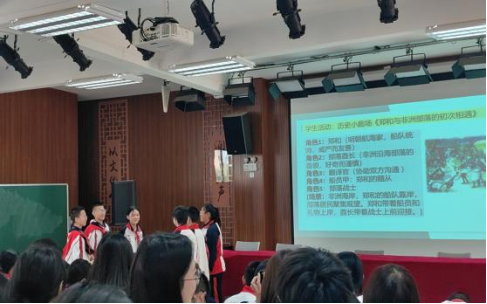 在这堂历史课中,老师先用与郑和相关的海外纪念建筑与地方图片为导入,引发员工的兴趣与思考。在教学的第二部分,先通过视频展现明代航海与造船技术、海外交往状况,再聚焦郑和下西洋,呈现其生平。老师将郑和下西洋与西方新航路开辟特点进行对比,培养员工时空观念;提供材料让员工分析郑和下西洋的条件及影响,培养员工史料分析能力;还让员工进行历史剧表演,生动有趣,令人印象深刻。
