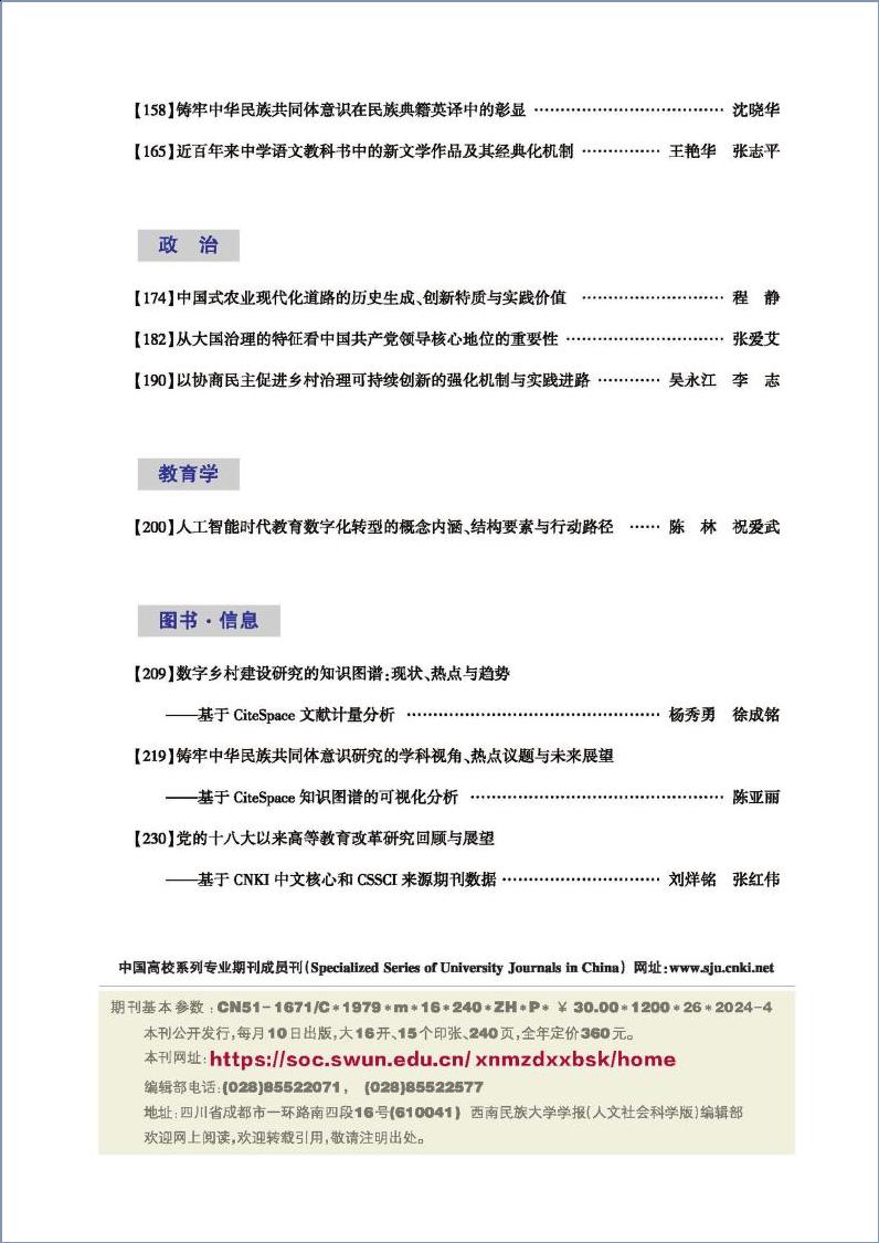近日,公司王艳华老师题为《近百年来中学语文教科书中的新文学作品及其经典化机制 》的学术论文,被刊录发表于权威刊物(中文社会科学引文索引CSSCI来源期刊、中文核心期刊、中国人文社会科学核心期刊、中国科技核心期刊)《西南民族大学学报》(人文社会科学版)2024年第4期。
