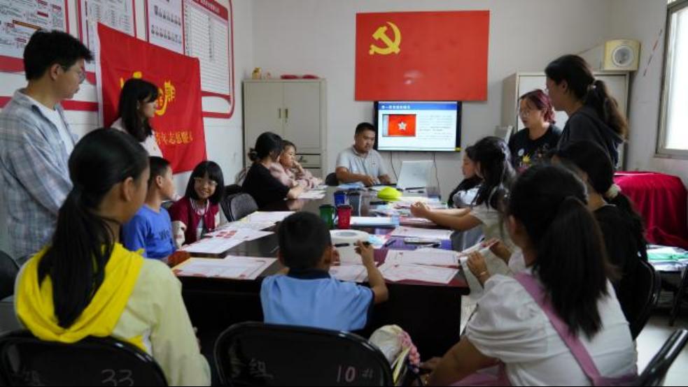 实践团队走进桃园小村,用心为当地孩子精心筹备了一系列丰富多彩的主题活动,涵盖爱国教育、身心成长、快乐学习以及科技创新等多个领域。团队以知识为火炬,照亮孩子们前行的道路,尽显青年学子对下一代的深切关爱与厚重责任。在活动中,他们耐心引导孩子们树立爱国情怀,激发孩子们的学习兴趣和创新思维,孩子们热情高涨,寓教于乐,眼中闪烁出对探索求知的光芒。