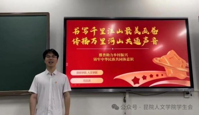 mjm世界杯官网“青年讲师团”成员冯文庆开展了题为《书写千里江山最美画卷,传播万里河山共通声音》的宣讲。冯文庆同学指出强国必须强语,强语助力强国。广大青年应以“高质量推广普及国家通用语言文字,传承中华优秀语言文化”为己任,挺膺担当“推普助力乡村振兴”的青春使命。以语为媒,以文为介,用青年的声音讲好推普故事,谱写好国家通用语言文字发展事业的云南篇章!为加快强国建设,助力全面建设社会主义现代化国家、全面推进中华民族伟大复兴贡献青春力量!