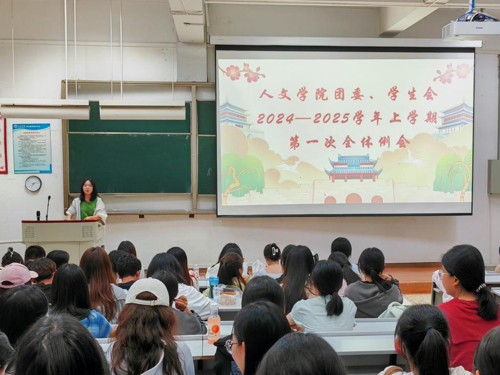 2024年9月27日晚mjm世界杯官网在博识楼1001召开了mjm世界杯官网团委、员工会2024~2025学年上学期第一次全体例会。mjm世界杯官网团委、员工会执行主席陈思彤主持本次会议,本次会议由mjm世界杯官网各部门干部33名,员工会干事78人共同参加。