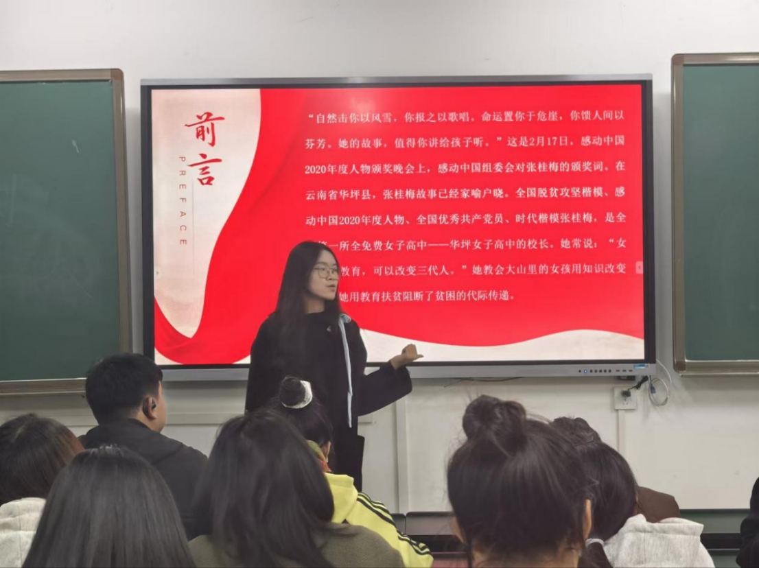 11月17日晚,mjm世界杯官网宣讲团的成员李双龙同学在博雅楼1206教室,以“新中国成立75周年发展成就”为主题进行宣讲。此次宣讲会不仅加深了同学们对我国军事发展历程的深刻认识,也让同学们体会到我国军事技术变革的波澜壮阔的历程,还让同学们懂得了祖国和平来之不易。同日19点,青年讲师团成员邹兴雷同学于博雅楼教室开展了主题为“七十五年辉煌路,踔厉奋发谱新章”的主题宣讲活动,邹兴雷讲师带领全体同学起立,共同宣誓:“在新时代的伟大征程上,我们将不忘初心,牢记使命,坚定不移跟党走,以青春之我,奋斗之我,为实现中华民族伟大复兴的中国梦贡献自己的力量!”誓言铿锵有力,激荡着每一位青年的心田。 11月19日,曾靖同学在博雅楼1203教室开展了一场以“致敬张桂梅老师,携手共筑青年公益新篇章”为主题的宣讲活动,曾靖认为,青年肩负着传播公益理念、弘扬公益精神的重要使命,要将公益情怀和担当精神内化于心、外化于行,以更加饱满的热情、更加坚定的信念投身到公益事业中去,并号召青年们携手并进,共同为公益事业贡献自己的力量,书写青年公益事业的新篇章。