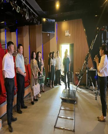 专家组首先对公司国家通用语言文字推广基地的硬件设施进行了考察。考察的内容主要包括图书馆语音机房、视觉媒体实验室、普通话测试机房、智慧教室、教室教育实训中心、语音教室以及公司语委办公环境。在每个考察点,推广基地的相关负责老师向专家组进行了硬件设施的详细介绍、师生使用反馈等,取得了专家组的一致好评。