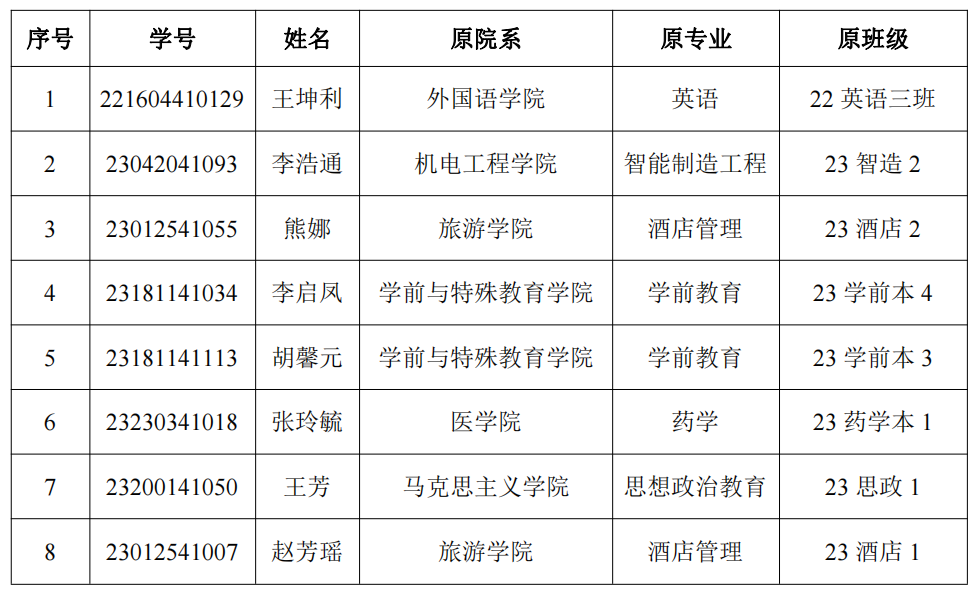 一、汉语言文学专业录取名单(共8名)