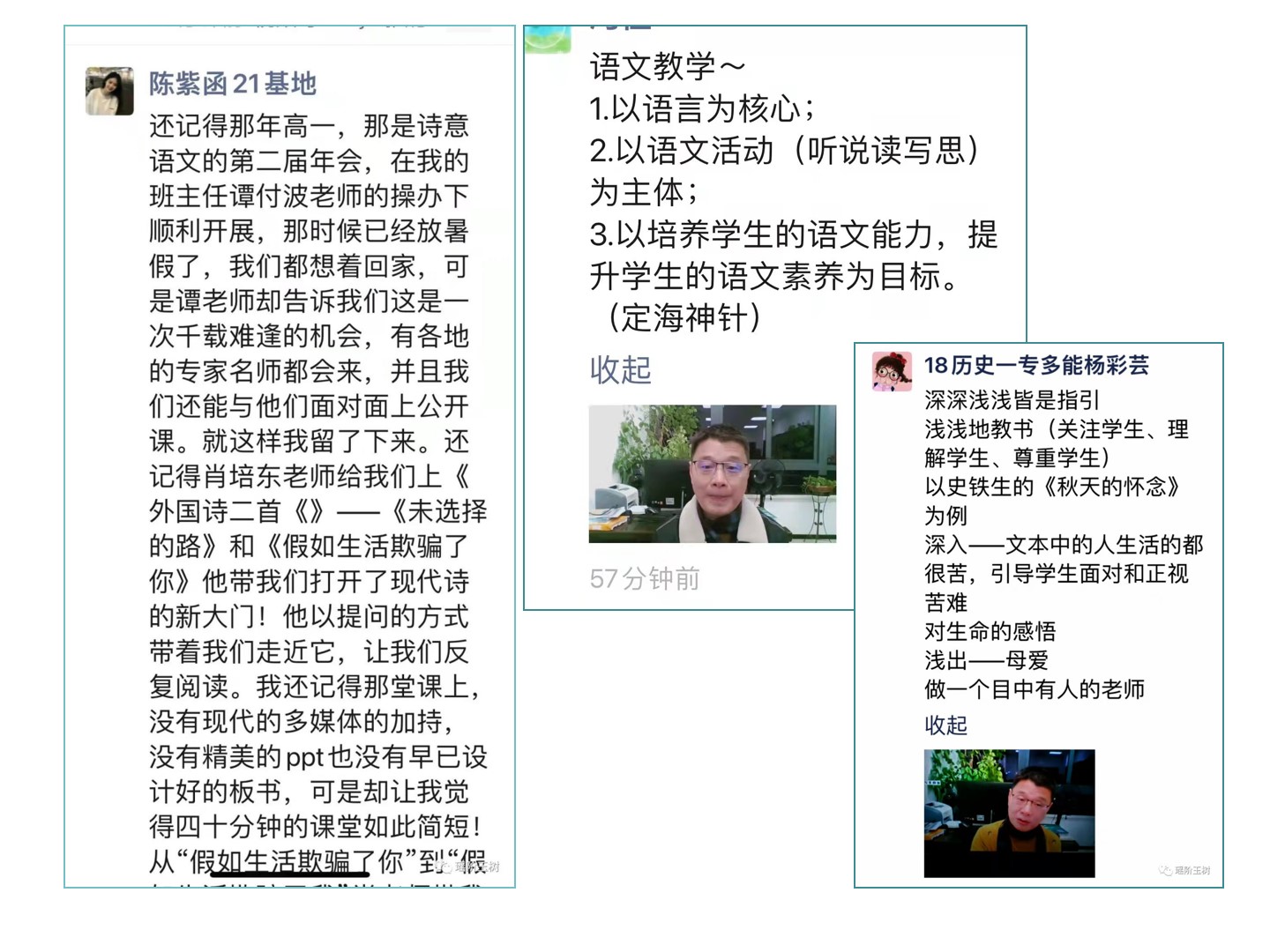 工作室沈照老师、王艳华老师、李文炳老师都分享了自己的学习感言,大家都非常认同肖老师的观点,一致认为语文课就该有语文味,语文课就该用语文的方式教学,相信工作室所有成员都希望自己的课堂能成为真正的语文课,只有真正的语文课才能让员工记住,才能对员工产生积极影响。肖老师的两堂课是能让我们记一辈子的课,正如邓瑶老师所说,肖老师以深入浅出的方式讲述了语文课的深入浅出,对我们就是一生的好课,希望我们所有语文老师都能在语文深深浅浅之间稳步而行,都能如肖老师所言:看着孩子的眼睛教学,别带他们走进无边的荒漠。
