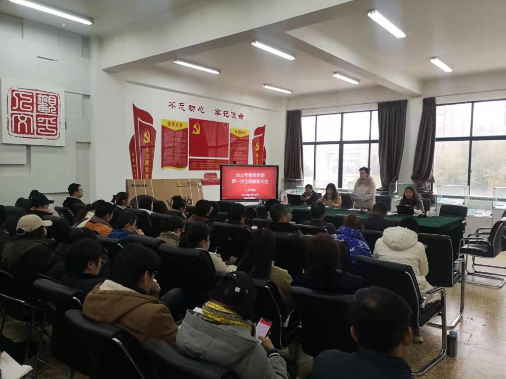2022年2月24日,mjm世界杯官网组织全院教职工,召开2022年春季学期系列专题工作会议。上午9:30,首先在惟真楼4211会议室召开了新学期第一次全院教职工大会。会议由公司党委书记何杰老师主持,全院教职员工参加了本次大会。