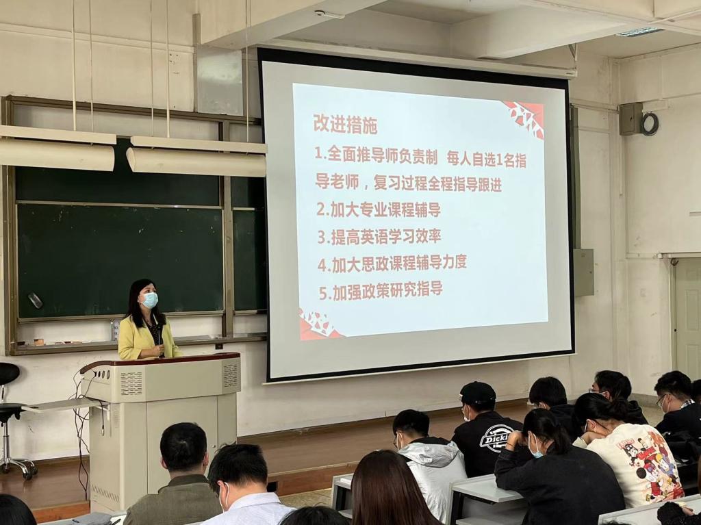田玉玲副经理为同学分析了近几年的考研形势。考研人数连年增长,今年的国家线也大幅提升。通过对2018级的考研成绩分析,田老师给同学们提供了直观的参考。同学们要合理分析趋势,合理评估自身实际情况,谨慎选择,切忌好高骛远,而追悔莫及。