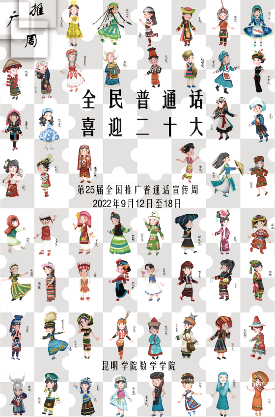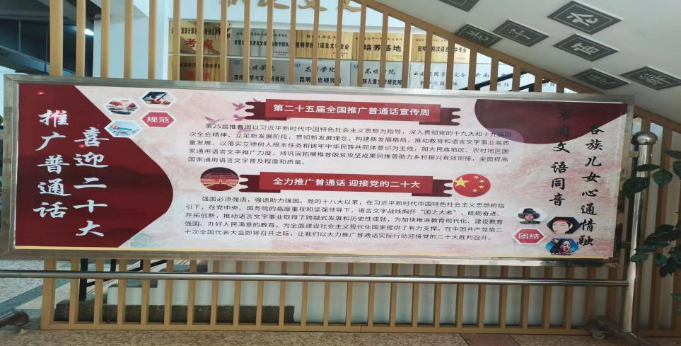 同时,作为推普周的系列活动之二,云南省国家通用语言文字推广基地和校语委办还将此次教育部推出的两款推普周宣传海报,在校园各处进行宣传,为党的二十大的召开营造浓厚氛围,积极宣传语言文字工作服务铸牢中华民族共同体意识、助力乡村振兴的重要作用。