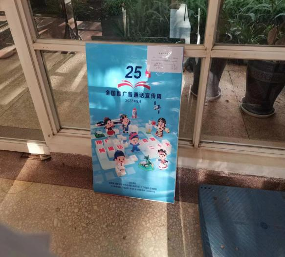 图为在公司宿舍楼内粘贴的教育部推普周宣传海报