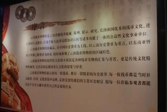 据李先生介绍,钱币博物馆始建于1995年,至今已有28年历史。此馆位于中国人民银行云南省分行内部。占地面积不大,布局合理,展品丰富。进入博物馆,映入眼帘的是一幅巨大的货币发展史浮雕,生动展现了从最早的贝币、布币到现代纸币的发展脉络。