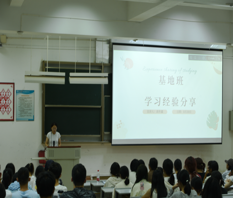 22级人文基地班的高年鑫同学作为优秀员工代表发言,她从学习生活、课程安排、班级学风、同学相处四个方面介绍基地班的情况,她也祝愿大家在进入基地班后能更好的实现自我价值。