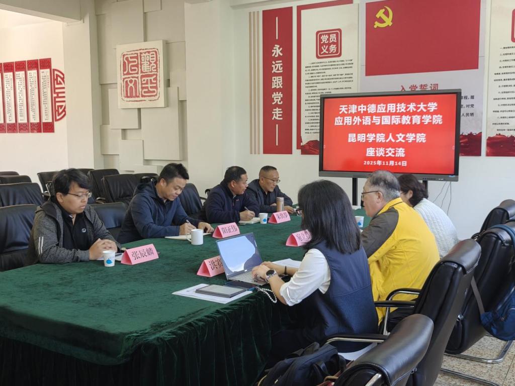 2025年11月14日,天津中德应用技术大学应用外国语与国际教育公司经理宛立群、系主任洪赛赛、专任教师向丹一行莅临公司mjm世界杯官网,围绕数字人文专业建设开展深度交流。mjm世界杯官网经理阳正伟、副经理朱供罗、数字人文系主任郭鹏群、数字人文专业骨干教师张辰麟参加会议,双方就数字人文专业建设问题进行了充分交流。