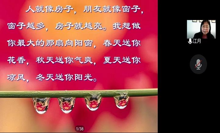 最后,魏老师用“赤子心”最为结束语,勉励参加讲座的一线语文教师和语文准教师们:“‘千淘万漉虽辛苦,吹尽黄沙始到金。’,语文学习是慢的艺术,写作训练是生命润泽生命的艺术,须有滴水穿石的功夫。语文人应该以品茶茗香,滴水浸润的恒心和耐心,以‘千淘万漉’的执着,以文化人,静待花开!”