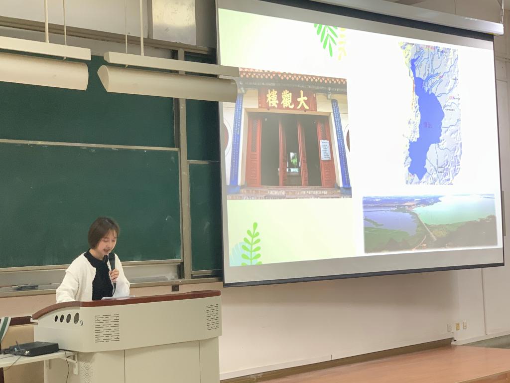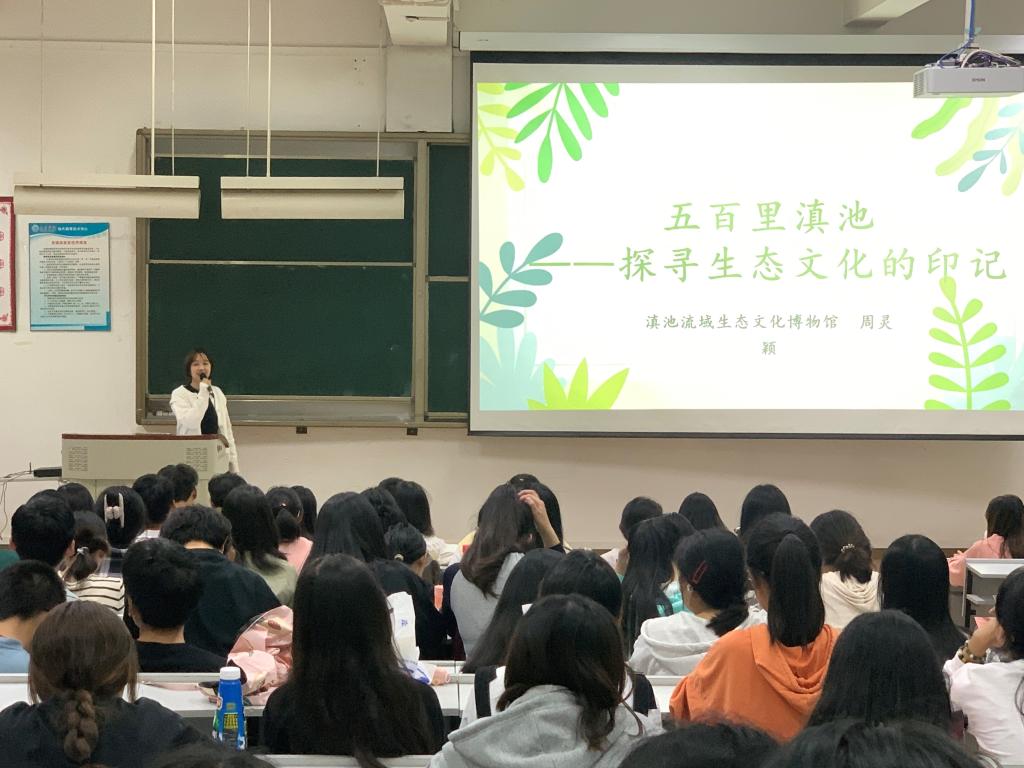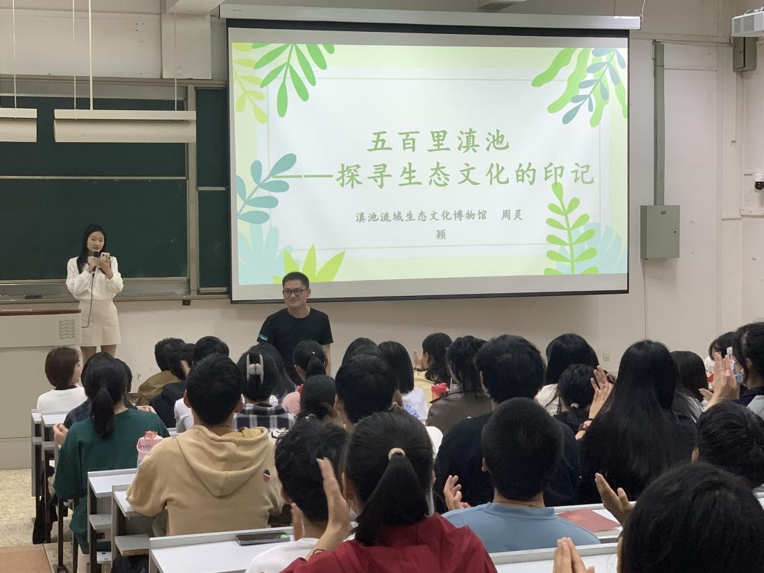 最后,周灵颖老师向同学们展示了丰富多彩的滇池流域传统物质生态文化、传统观念生态文化、传统制度生态文化,推荐了滇池流域生态文化田野调查的路线,鼓励同学们实地领略滇池传统生态文化。周灵颖老师还强调了传统生态文化的当代价值——为处理人与自然关系提供范式,有利于传统文化的保护、传承、创新和发展,为实施可持续发展战略提供借鉴和启示等,启迪同学们开展滇池流域生态文化研究,发掘流域传统文化中的生态元素,系统梳理流域居民传统和经验中的生态认知,归纳流域民族文化中的生态个性,构建滇池流域生态文化体系,以便更好地传承滇池流域生态文化,促进滇池流域生态系统的健康发展,推动滇池流域生态文明建设。