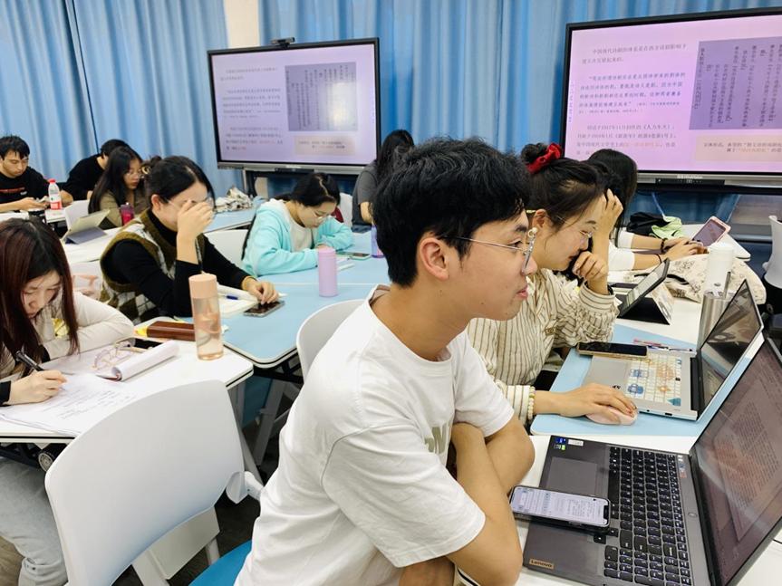 接着,董老师谈及鲁迅的文体实验及其影响下的创作,引导同学们分析了鲁迅的《颓败线的颤动》等作品,让同学们领略了中国现代散文诗剧悲剧反讽的文体风格。董老师以鲁迅散文诗剧为例,带领同学们探析了中国现代文学的边缘性文体——中国现代诗剧的文体范式——“戏剧化的诗”和“诗的戏剧化” (纯诗的戏剧化、散文诗的戏剧化) ,回溯了中国现代诗剧的历史流变。