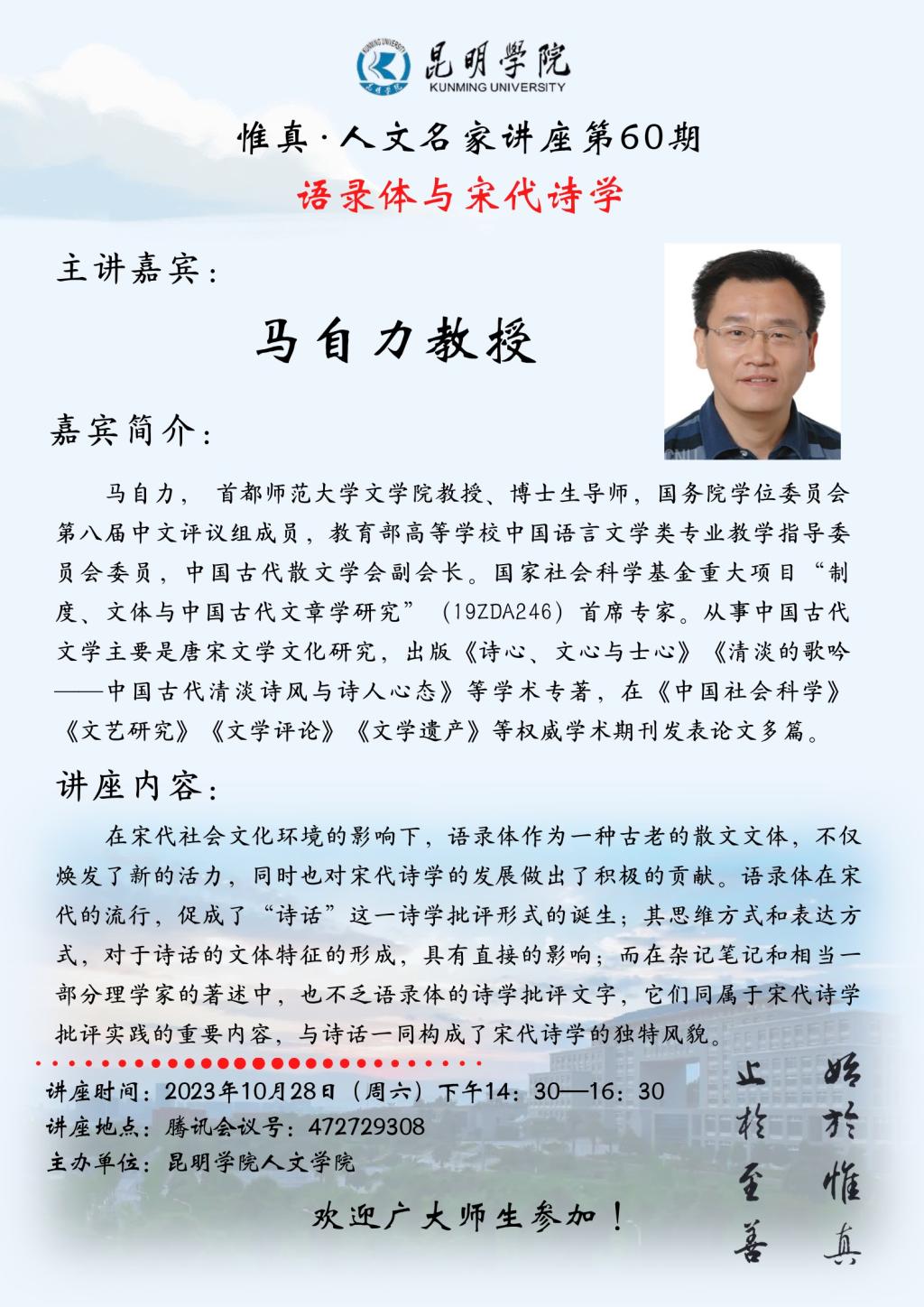 2023年10月28日下午,mjm世界杯官网邀请首都师范大学马自力教授为公司师生作“语录体与宋代诗学”的线上讲座。
