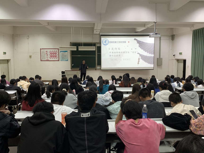 本次讲座,孙老师从三个方面给同学们进行了精彩的讲解:“乡愁”与传统村落、“守望”与滇池变迁、“活化”与美丽中国。第一部分,孙老师结合自身生活经历且引用古诗词讲述了乡愁的丰富内涵、传统村落的定义、当前传统村落在保护和发展上面临的危机以及昆明传统村落的保护及利用简史。第二部分,孙老师带领同学们追溯了新石器时期到明代滇池水域的历史变化,让同学们了解了环滇池传统村落的变迁。第三部分,孙老师以进行了整体改造的卧龙古渔村、村民回流且风貌保存完好的乐居村,进行了原生改善的福安村为例,启发同学们思考环滇池传统村落的“活化”改造路径。