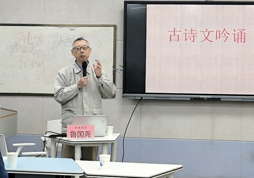 本次讲座围绕“古诗吟诵”展开,鲁国尧先生以先人对“吟”的态度及其自身学习吟咏的经历为引,指出吟诵的几个关键词语:“身心沉浸、物我融一;曼声;摇曳”,并依次为师生吟咏《游子吟》《出塞》《琵琶行》等经典诗词,让师生深入感受诗词之美、吟诵之美。此外,鲁国尧先生强调“品味诗词就像吃饭,羊有羊的味道,诗也有诗的味道”,鼓励同学们利用吟诵品味诗的不同味道,体会诗歌中蕴含的不同情感。随后,张民权教授鼓励同学们多学习一些古音韵学的知识,以更好地品味诗词的韵律之美。