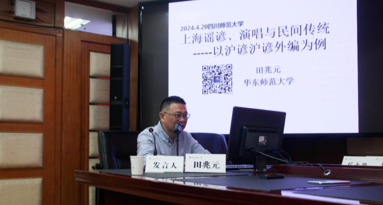 华东师范大学田兆元教授以《上海谣谚、演唱与民间传统——以<沪谚><沪谚外编>为例》为主题,结合各类叙事形态及民俗谱系,引出上海谣谚史中的重要人物,呈现上海谣谚面临的困境与矛盾,重点关注其内在的表述危机,探讨上海谣谚的保护价值与保护路径,并与毛巧晖老师的部分观点进行对话。