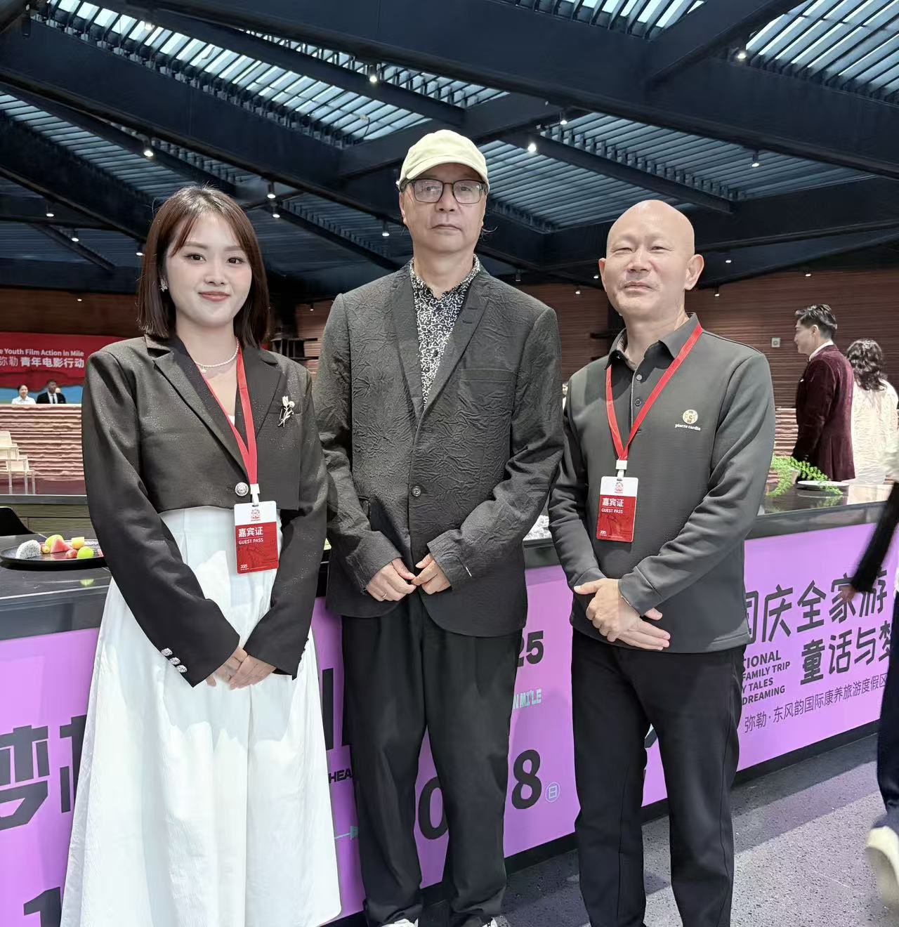 2025年10月13日至17日,由中国电影家协会、中国文联电影艺术中心、云南省文联、中共红河州委宣传部联合主办的“光影红河·快乐弥勒”——红河弥勒青年电影行动在弥勒东风韵小镇举行。活动恰逢中国电影120周年,以“青春致敬光影,文旅赋能发展”为主线,设置电影短片训练营、金鸡获奖影片展映、云南新项目推介等十余项板块,旨在为青年影人搭建“创作—产业—文旅”三位一体平台。2025级中国少数民族语言文学方向硕士研究生毕宁宏与编剧王红彬老师(其导师),代表曹芮师姐,作为其出品的新作《奔跑吧大洋芋》的执行制片赴会,亲身感受这场电影盛宴的魅力,并与导演马应富、执行导演王飞翔全程参与“云南电影新项目推介会”及闭幕式走红毯活动。