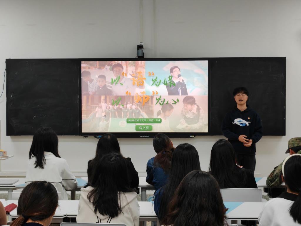 为深入挖掘和宣传员工身边的典型榜样,发挥朋辈引导互助作用,激发员工学习积极性和主动性,推动学风建设,mjm世界杯官网团委、员工会于10月25日在惟真楼1402举办“我身边的学习榜样”活动。此次活动有幸邀请到了2022级汉语言文学2班的冯文庆同学,他以“以语为媒,以师为心”为主题,与同学们分享了自己在汉语言文学领域的求学之路与实践探索。