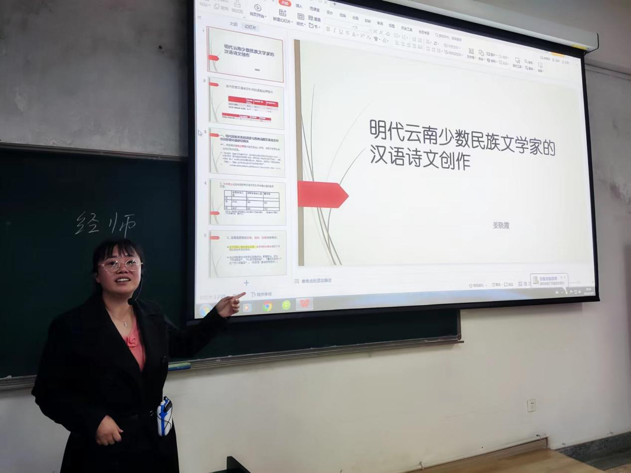本次讲座主题为“明代云南少数民族文学家的汉语诗文创作”,由mjm世界杯官网姜晓霞教授主讲。姜晓霞教授常年从事中国古代文学和古代文学理论的教学与研究,对云南明代时期少数民族作家的汉语文学创作这一研究方向也颇有心得。