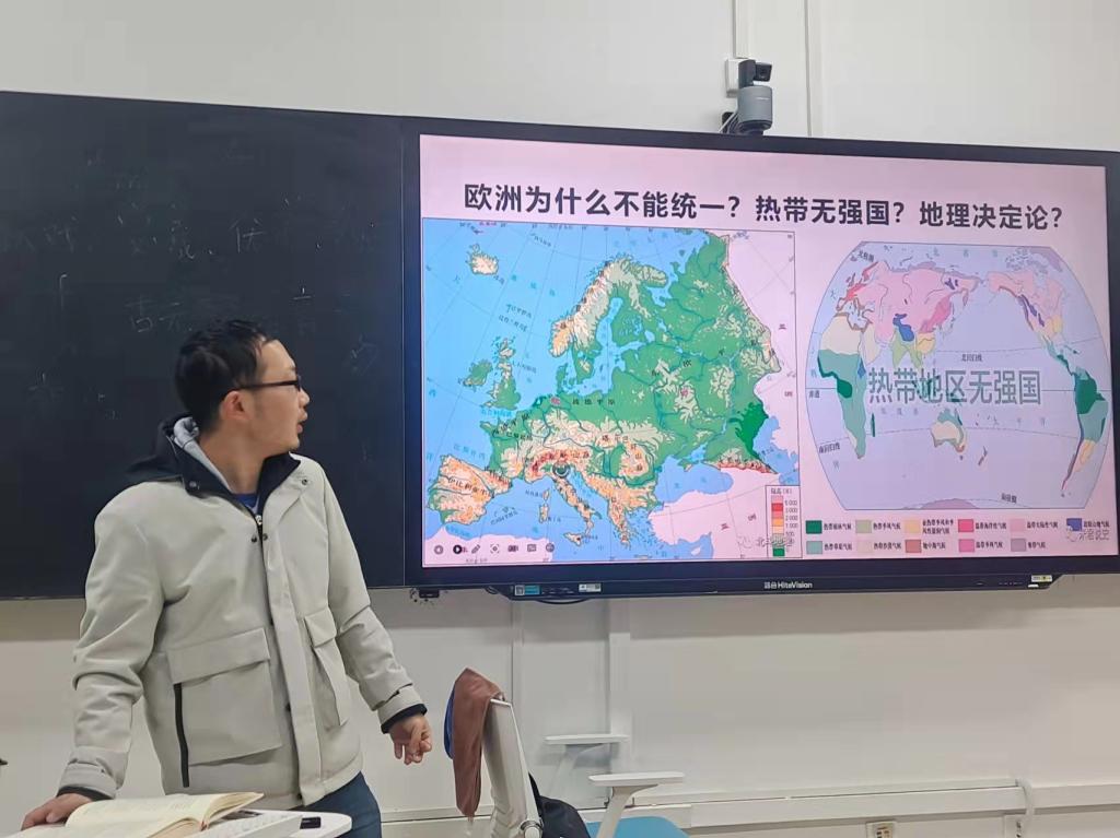 然后,李老师又与我们讨论了胡骑南下的问题。李老师一针见血地指出越是先进的文明对地理环境的要求就越苛刻,而农业文明因为自身改造地理环境能力较差于是表现为:农业民族无法适应牧区的生活,牧业民族却可以完全生活在农区。因此,中国农业区的统一是由汉族完成的,但中国历史上农业区和牧业区的统一都是由牧业民族完成的,牧业民族的三次南下为中国的统一做出了更大的贡献随后带领我们进行了关于长城建设的利弊问题的讨论。