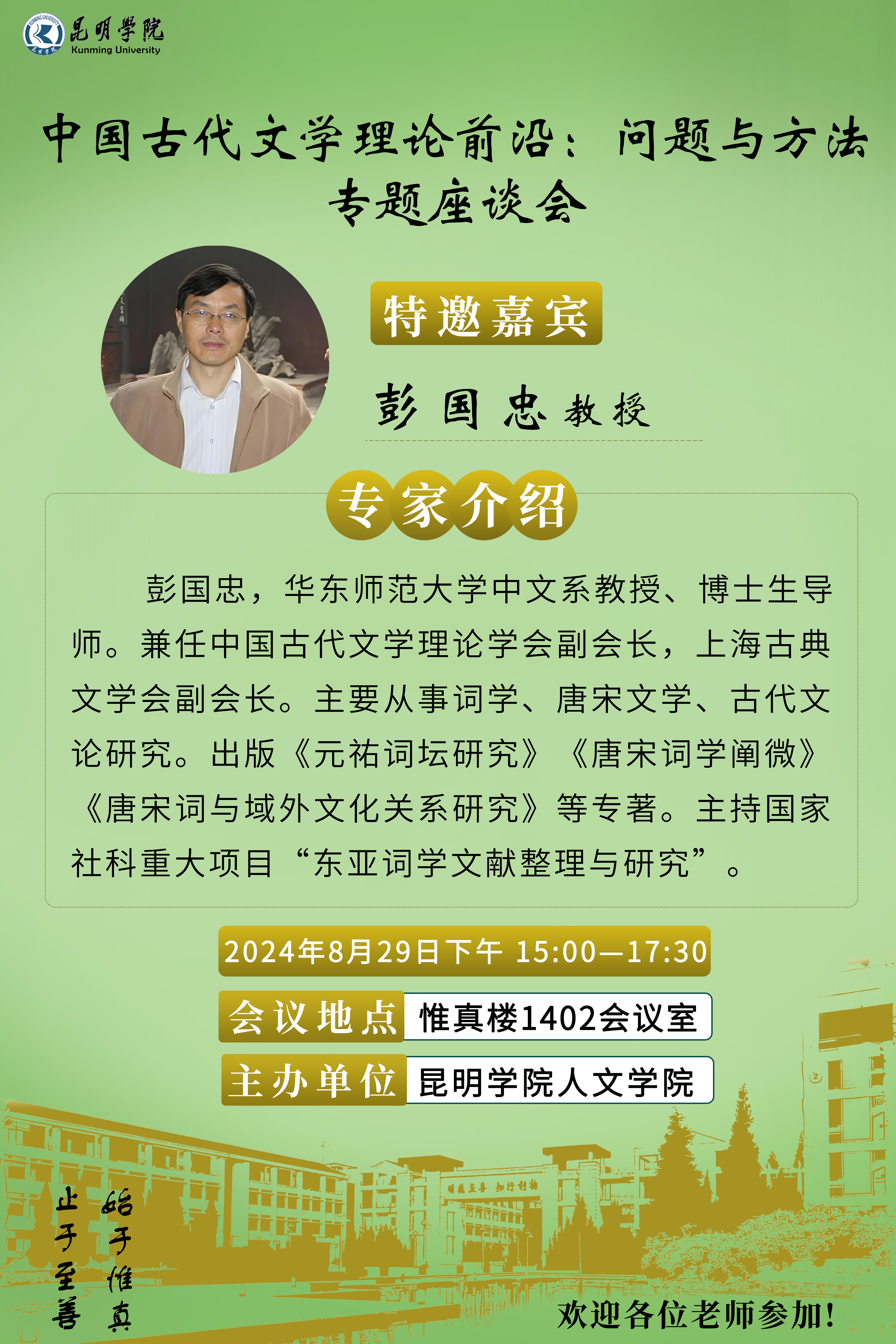 彭国忠教授主讲中国古代文学理论前沿:问题与方法专题座谈会,欢迎参加